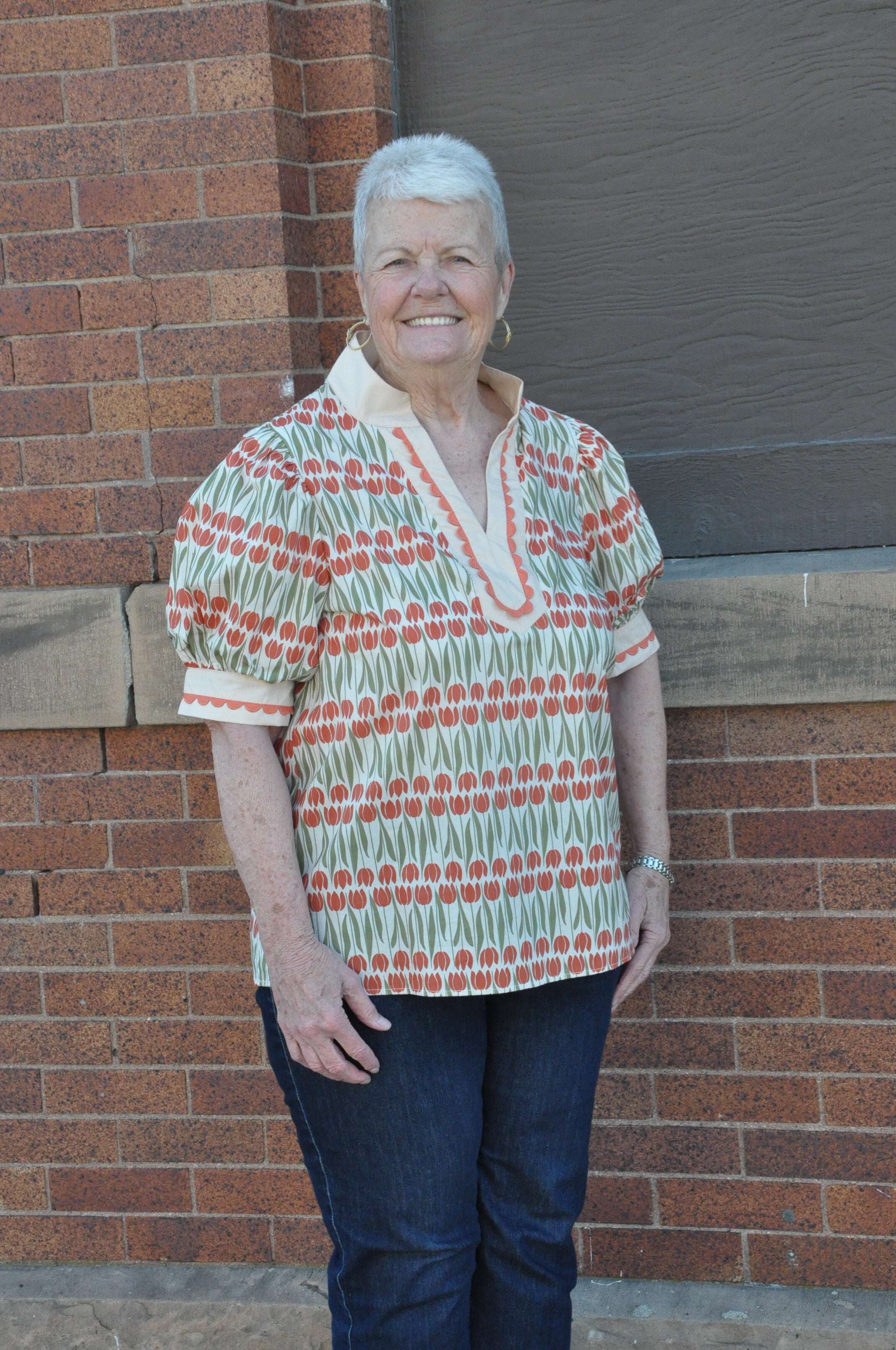 The Curvy Caftan-Inspired Puff Sleeve Top in Ecru is a beautifully detailed piece that blends boho charm with feminine elegance. Made from 100% cotton, this lightweight woven top features a floral pattern, short puff sleeves with cuff bands, and a caftan-inspired high neckline. The contrast scallop trim embellishment adds a unique, eye-catching touch. Unlined, non-sheer, and breathable, it's perfect for warm days and pairs effortlessly with jeans, skirts, or shorts for a chic, easygoing look.