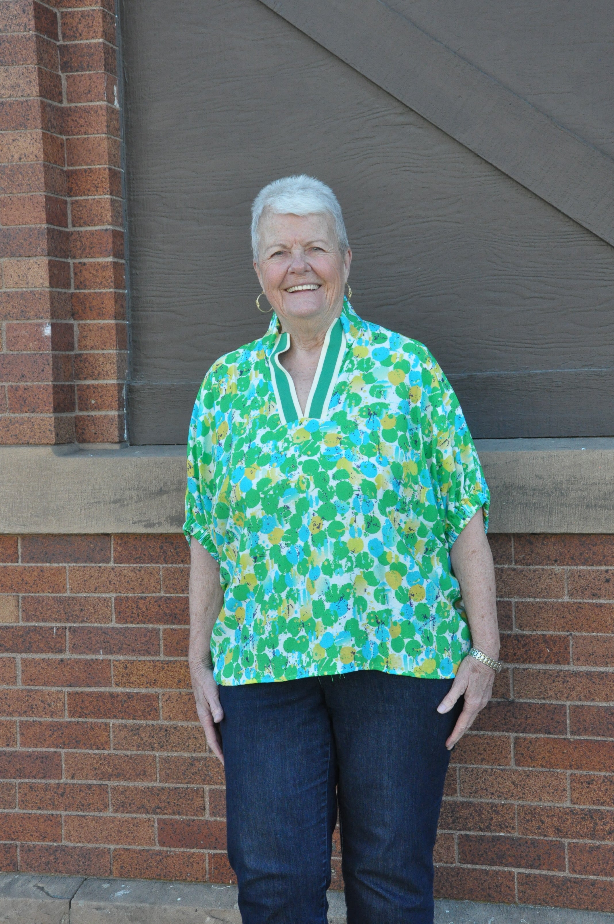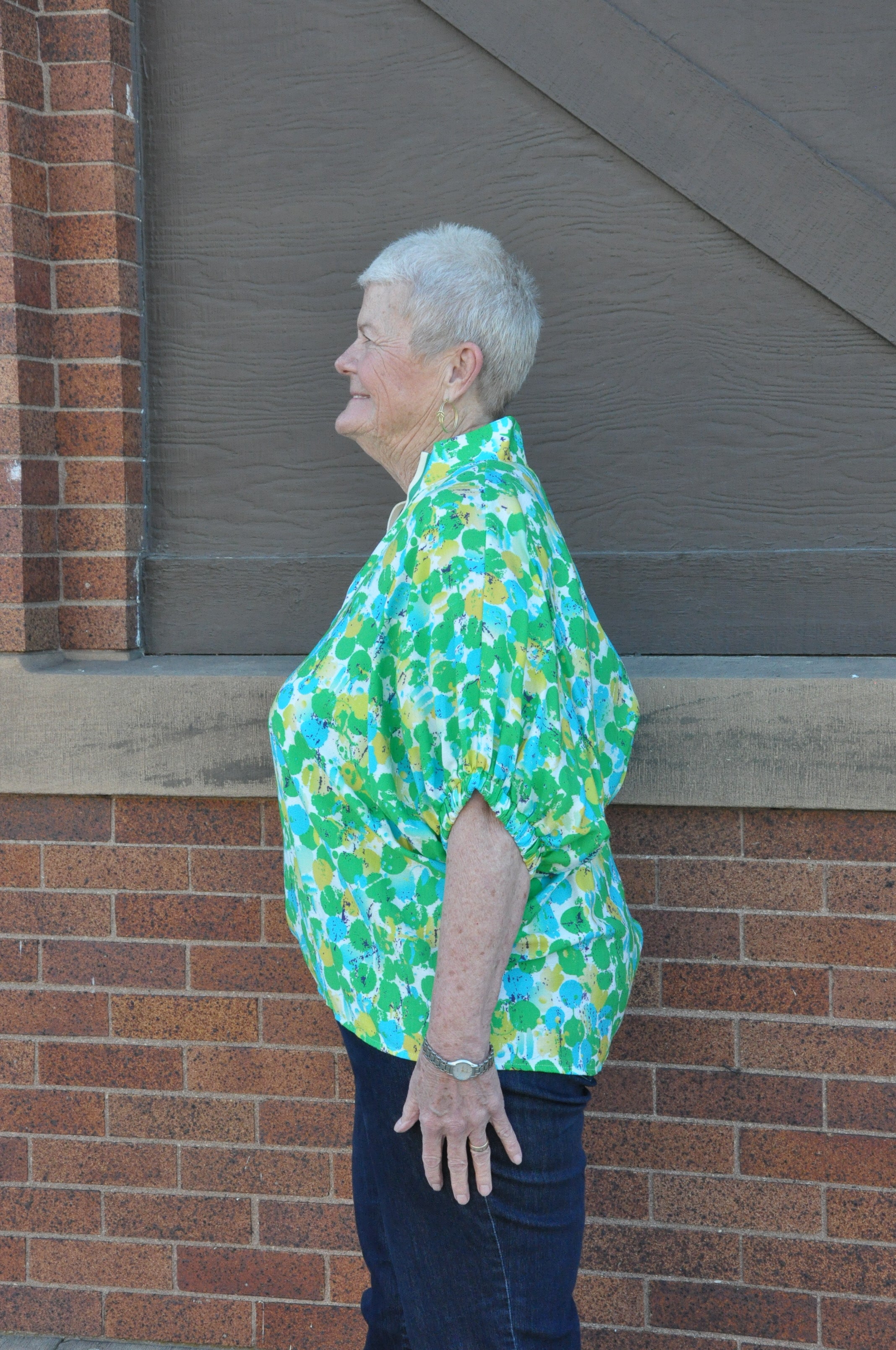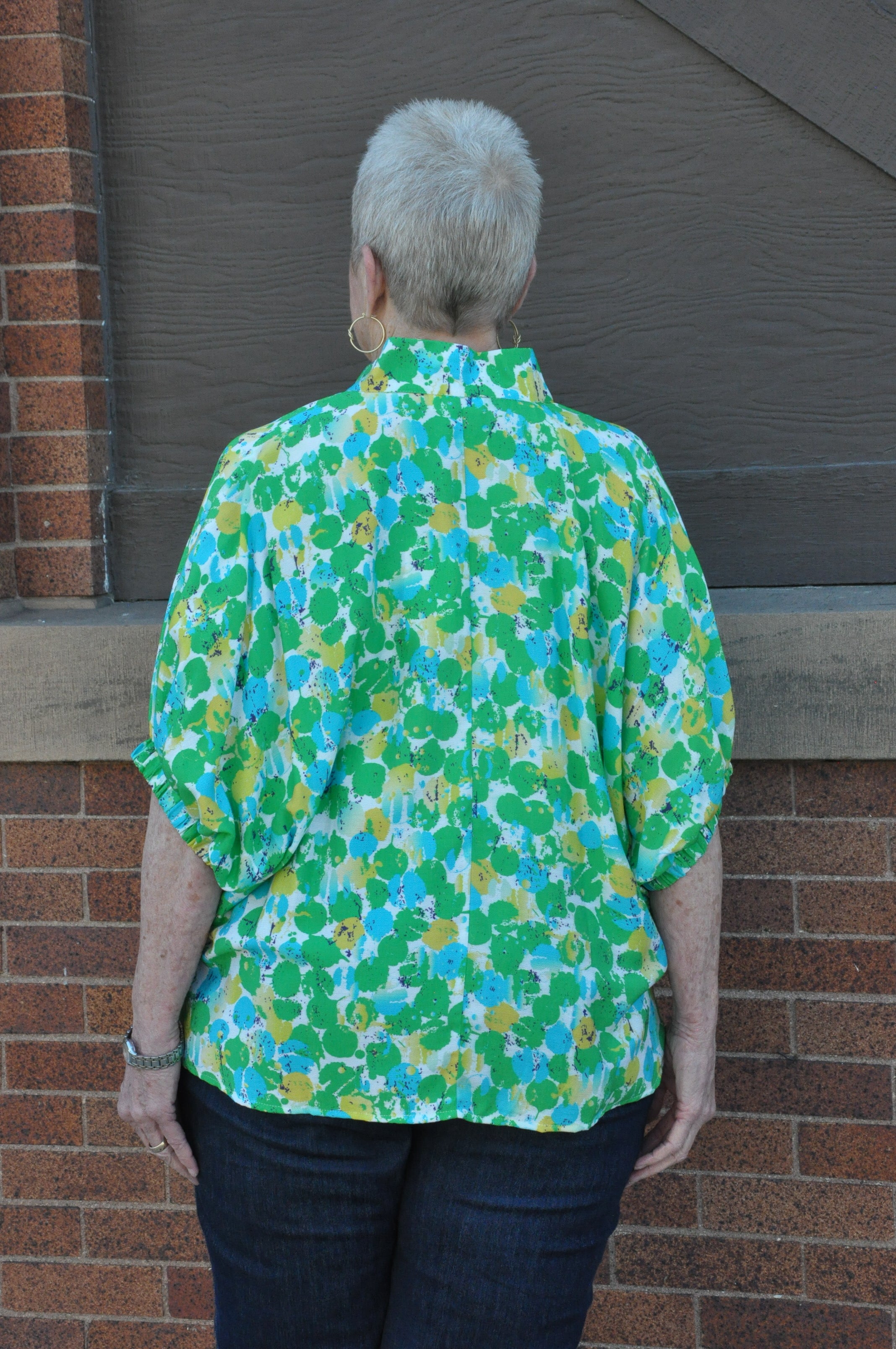 The Curvy Multicolor Abstract Dolman Top in Green is a bold and breezy statement piece designed for effortless style. Featuring a vibrant abstract print, this lightweight woven top offers a relaxed dolman silhouette with elasticated sleeves for a comfortable fit. The split neckline is accented with multicolor detailing and a high neck band for a unique, polished touch. Made from a breathable blend of 83% rayon and 17% nylon, it’s unlined, non-sheer, and perfect for warm weather. Pair it with your favorite denim or dress pants for an eye-catching, easygoing look.