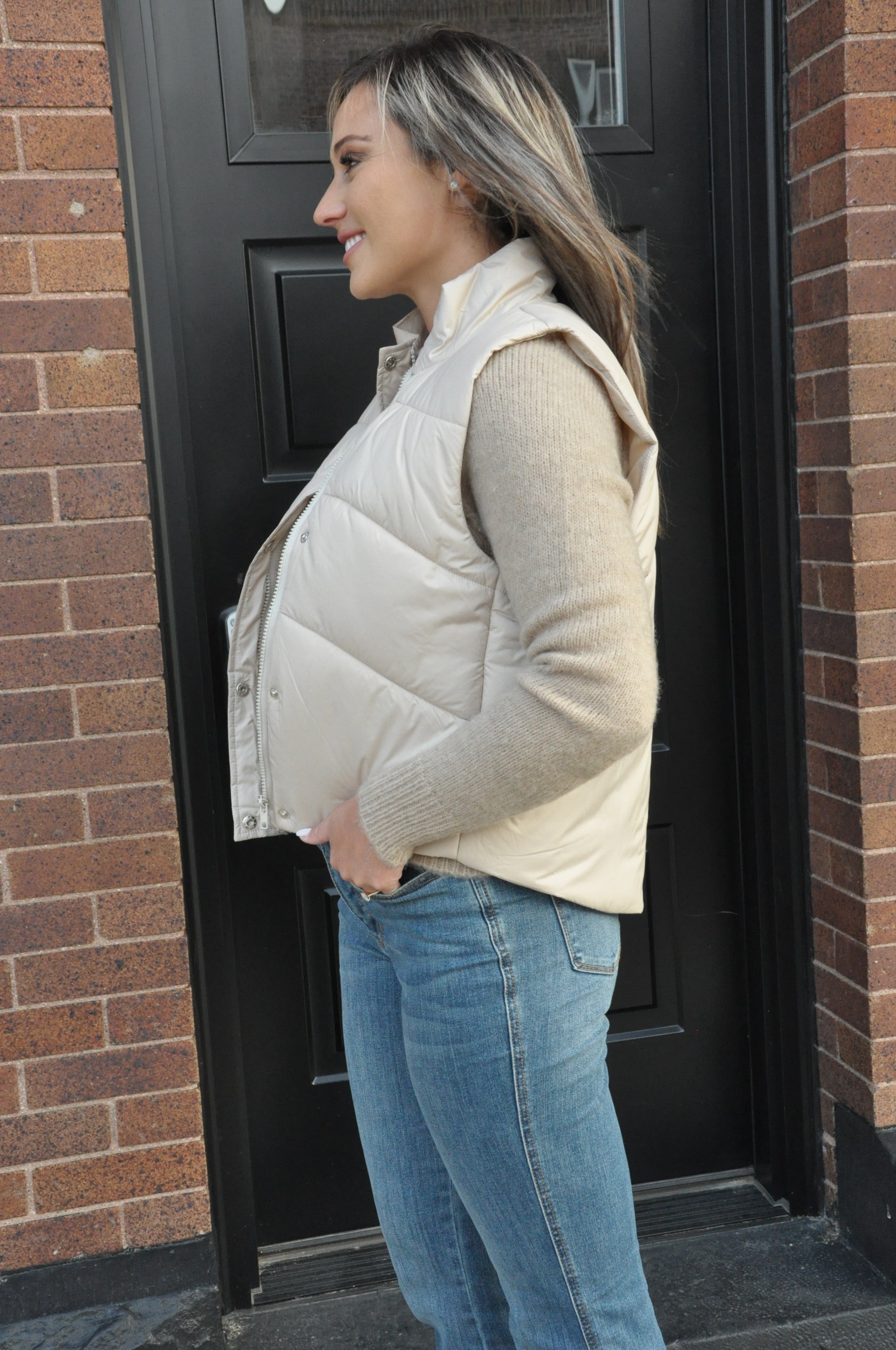 The Polar Collar Hidden Snap Zip Up Puffer Vest in Beige is the perfect outerwear piece for layering when the temperatures drop. Made from 100% polyester, it delivers lightweight warmth with a sleek, polished finish. The standout polar collar adds both coziness and style, giving the vest a chic edge while keeping you snug against chilly winds. Featuring a hidden snap closure paired with a smooth zip-up front, it offers a clean, streamlined look with versatile functionality. The side pockets are practical for carrying essentials or simply keeping your hands warm. Its neutral beige shade makes it endlessly versatile, pairing seamlessly with everything from jeans and sweaters to casual dresses and boots. Whether you’re heading out for a crisp morning walk, layering up for a casual day in town, or styling it as part of a chic cold-weather look, this puffer vest provides just the right balance of warmth, comfort, and effortless sophistication.