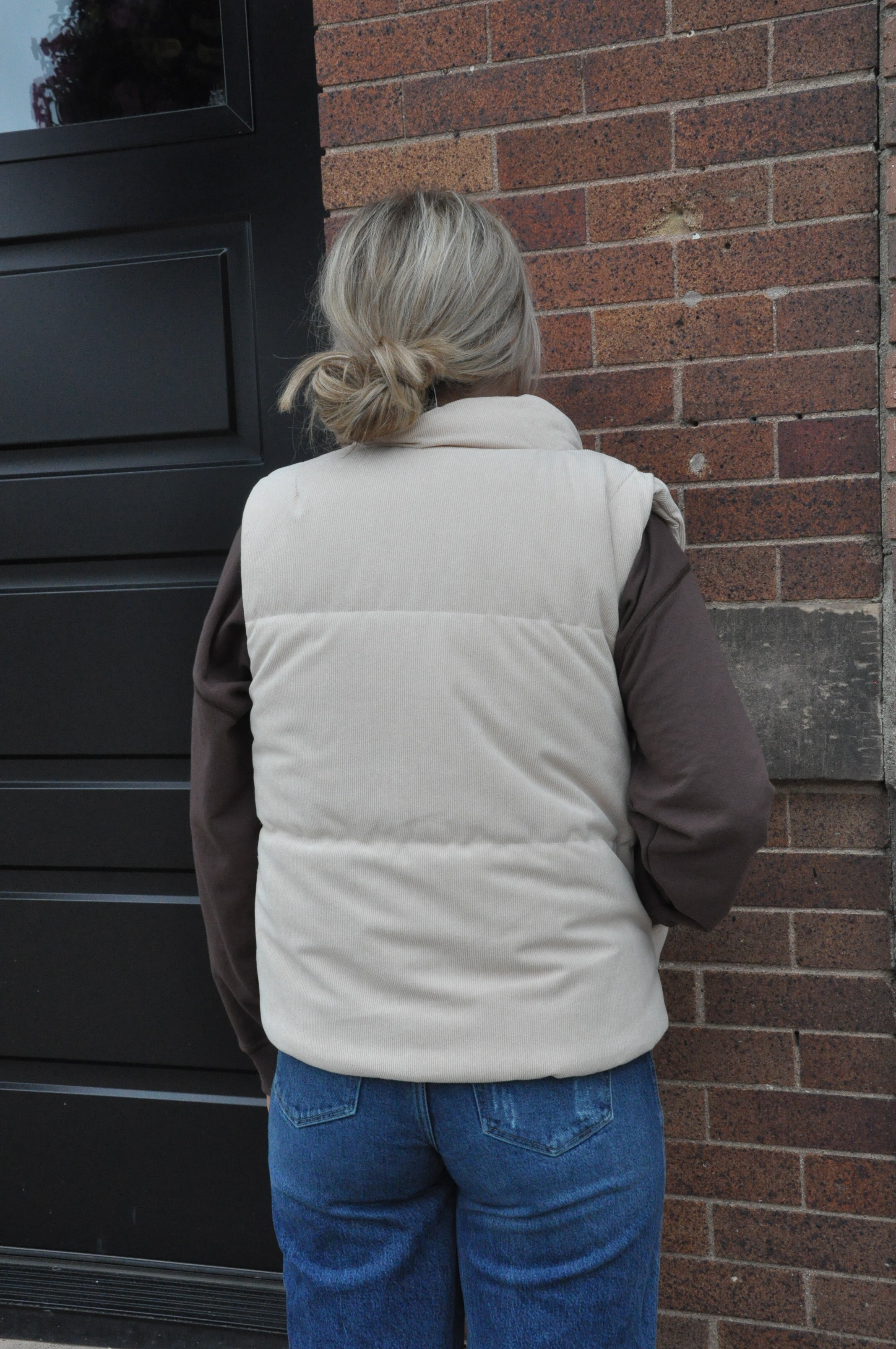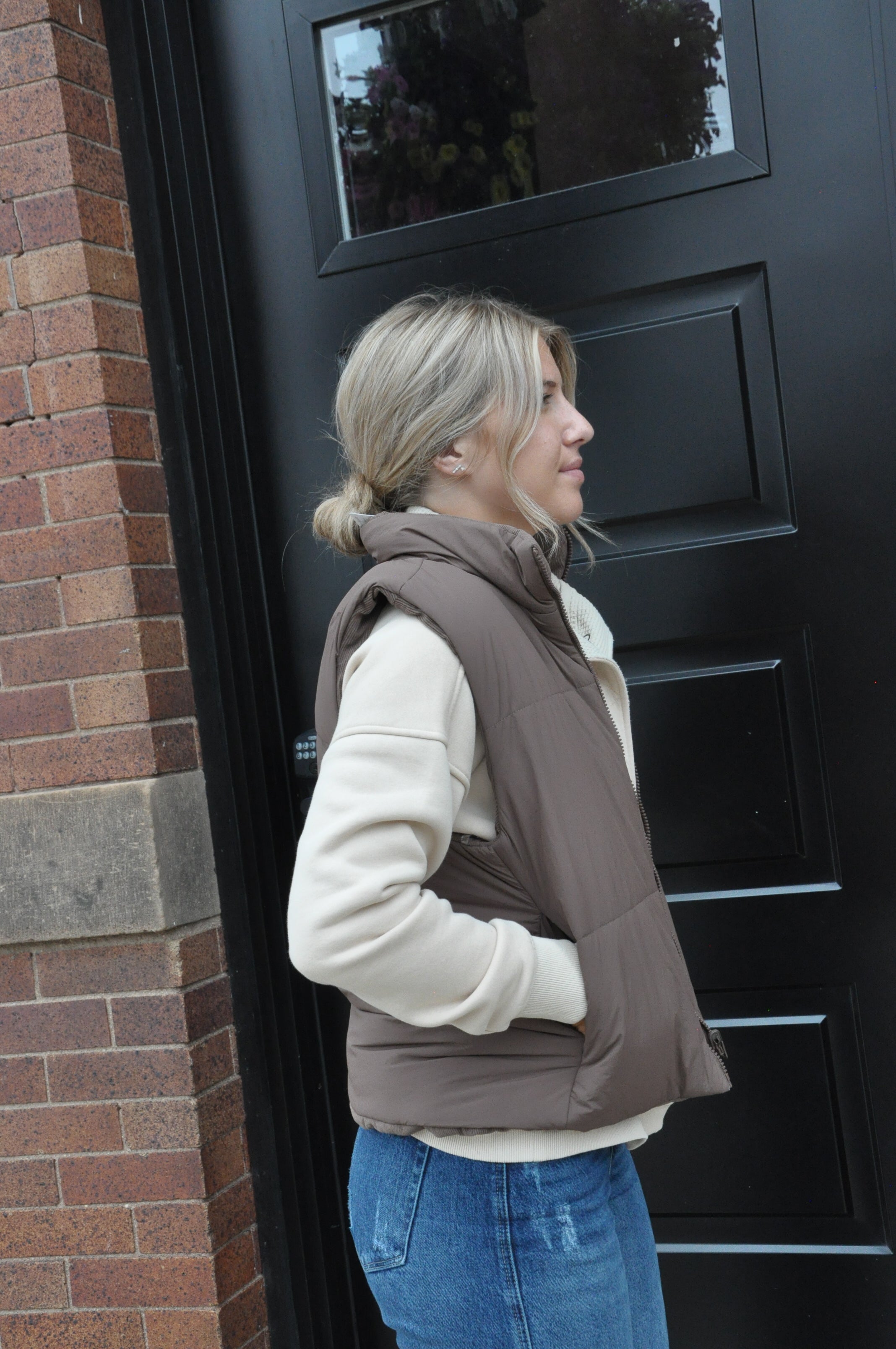 The Reversible Corduroy Puffer Vest in Brown, Oatmeal, or Sage is the ultimate combination of style, functionality, and versatility. Crafted from 100% nylon, it features a cozy polar neck for added warmth and a sleek zip-up front for easy layering. The corduroy texture brings a soft, retro-inspired feel, while the puffer design keeps you insulated without being bulky.