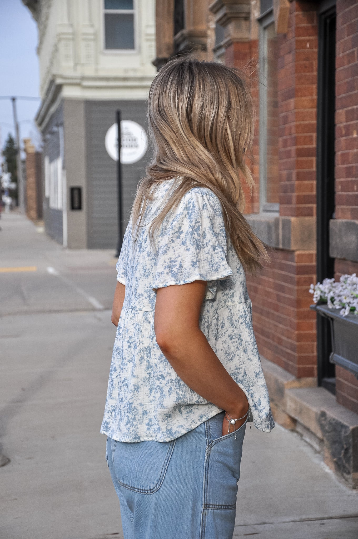 Light, airy, and effortlessly sweet, the Cloud Print Gauze Peplum Top in Light Blue is the perfect piece for easy, everyday style. Crafted from soft gauze fabric, it offers a breathable, lightweight feel that’s ideal for warmer days. The delicate cloud-inspired print adds a whimsical, feminine touch while keeping the look soft and subtle. Designed with a classic round cut neckline and comfortable short sleeves, this top provides a flattering and easy fit through the shoulders and bodice. The peplum silhouette gently flares at the waist, creating beautiful shape and movement while offering a comfortable, relaxed feel. Pair it with white denim for a fresh spring look, or style it with your favorite jeans and sandals for a casual-chic outfit. Whether you’re heading to brunch, running errands, or enjoying a sunny afternoon, this top brings softness, charm, and effortless style to your wardrobe.