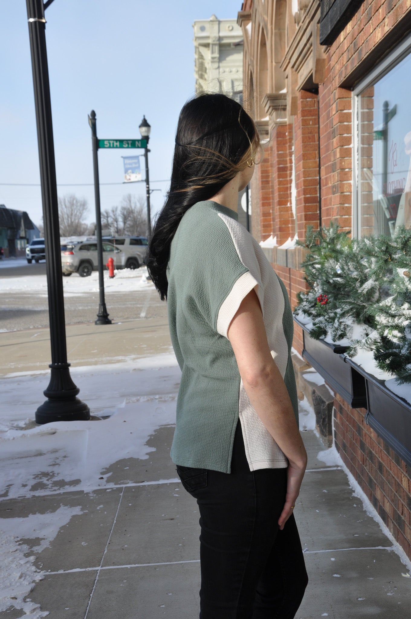 The Colorblock Cloudy Knit Round Neck Short Sleeve Top in Army, Cream, and Charcoal combines modern style with cozy comfort. Crafted from ultra-soft Cloudy Knit fabric, it features a lightweight feel with gentle stretch for all-day ease. The colorblock design adds a trendy, casual vibe, while the round neckline and relaxed short sleeve fit make it perfect for layering or standalone wear. Ideal for pairing with denim, leggings, or shorts, this top brings effortless versatility to your everyday wardrobe. The Colorblock Cloudy Knit SS Top delivers the perfect balance of comfort, texture, and contemporary style.