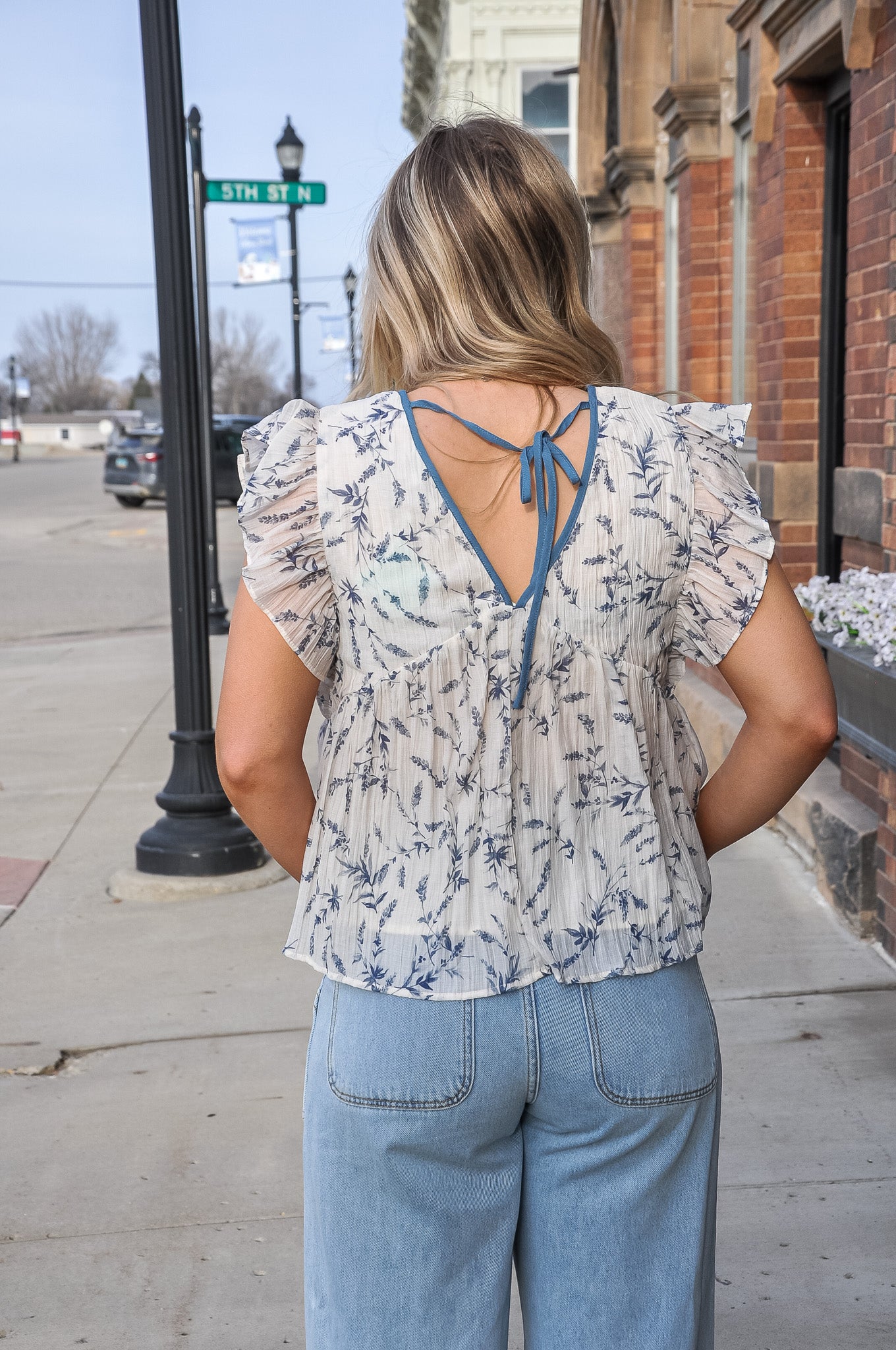 Feminine, fresh, and beautifully detailed, the Women’s Contrast Piped Textured Floral Ruffle Tank in Blue is the perfect statement piece for your warm-weather wardrobe. Crafted from textured floral fabric, this tank adds dimension and softness while keeping the look elevated and unique. The contrast piping trim highlights the silhouette with a polished finish, giving it just the right touch of tailored charm. Delicate ruffle sleeves create a romantic, airy feel that flatters the shoulders and adds subtle movement. Designed with a back tie closure, it offers an adjustable fit while adding a sweet, eye-catching detail from behind. The soft blue hue feels fresh and versatile, pairing effortlessly with white denim, classic jeans, or a flowy skirt. Whether you’re dressing for brunch, a casual event, or a day out in the sun, this tank blends texture, charm, and effortless style in one beautiful piece.