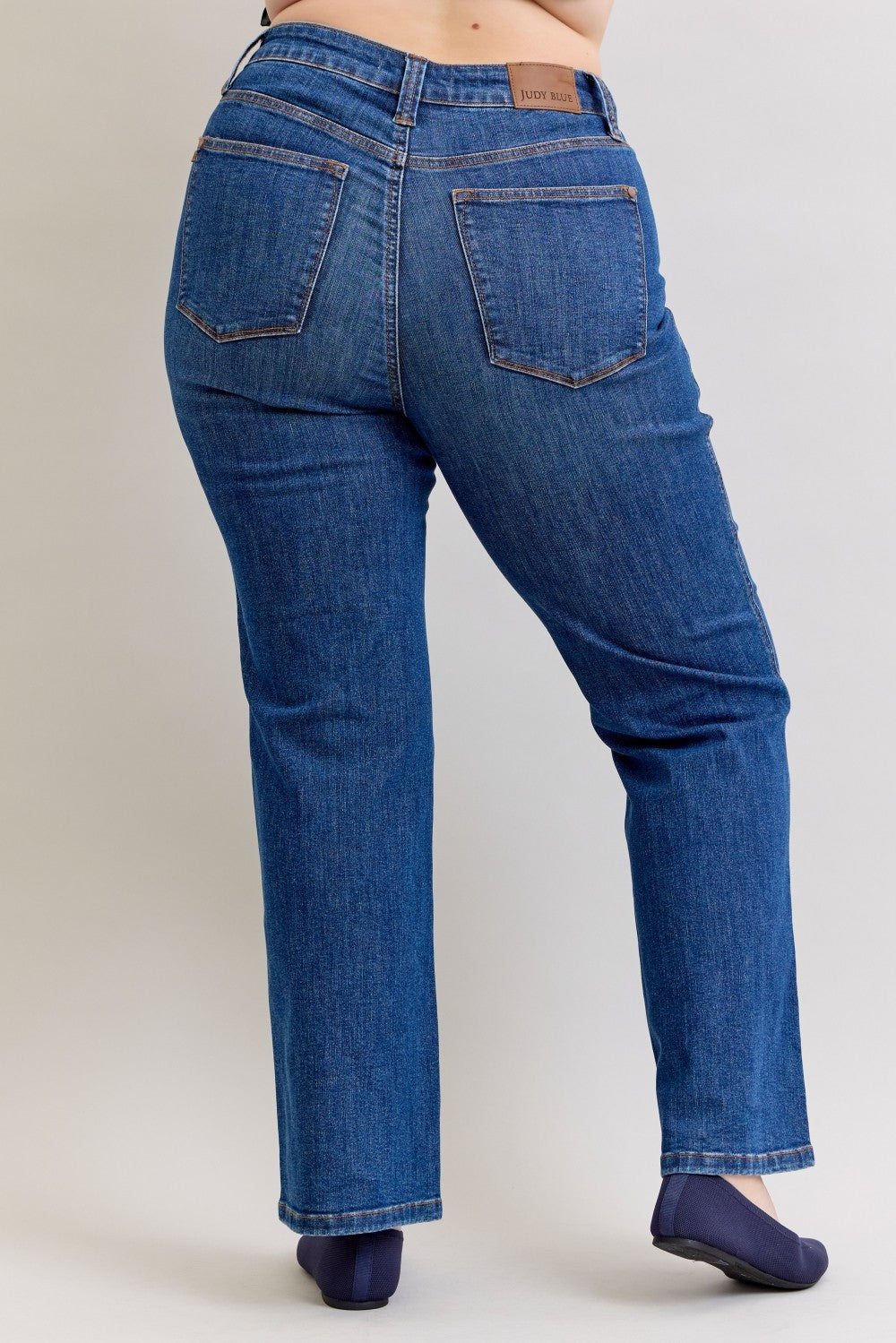 The Judy Blue Curvy High Waist Tummy Control Straight Jeans in a versatile medium wash are designed to give curvy figures the perfect blend of comfort, support, and everyday style. Featuring Judy Blue’s signature tummy control panel, these jeans offer gentle shaping through the waist for a smooth, confident fit without feeling restrictive. With a flattering 12 1/4" high rise, they sit comfortably at the natural waist, enhancing your silhouette while providing all-day comfort.