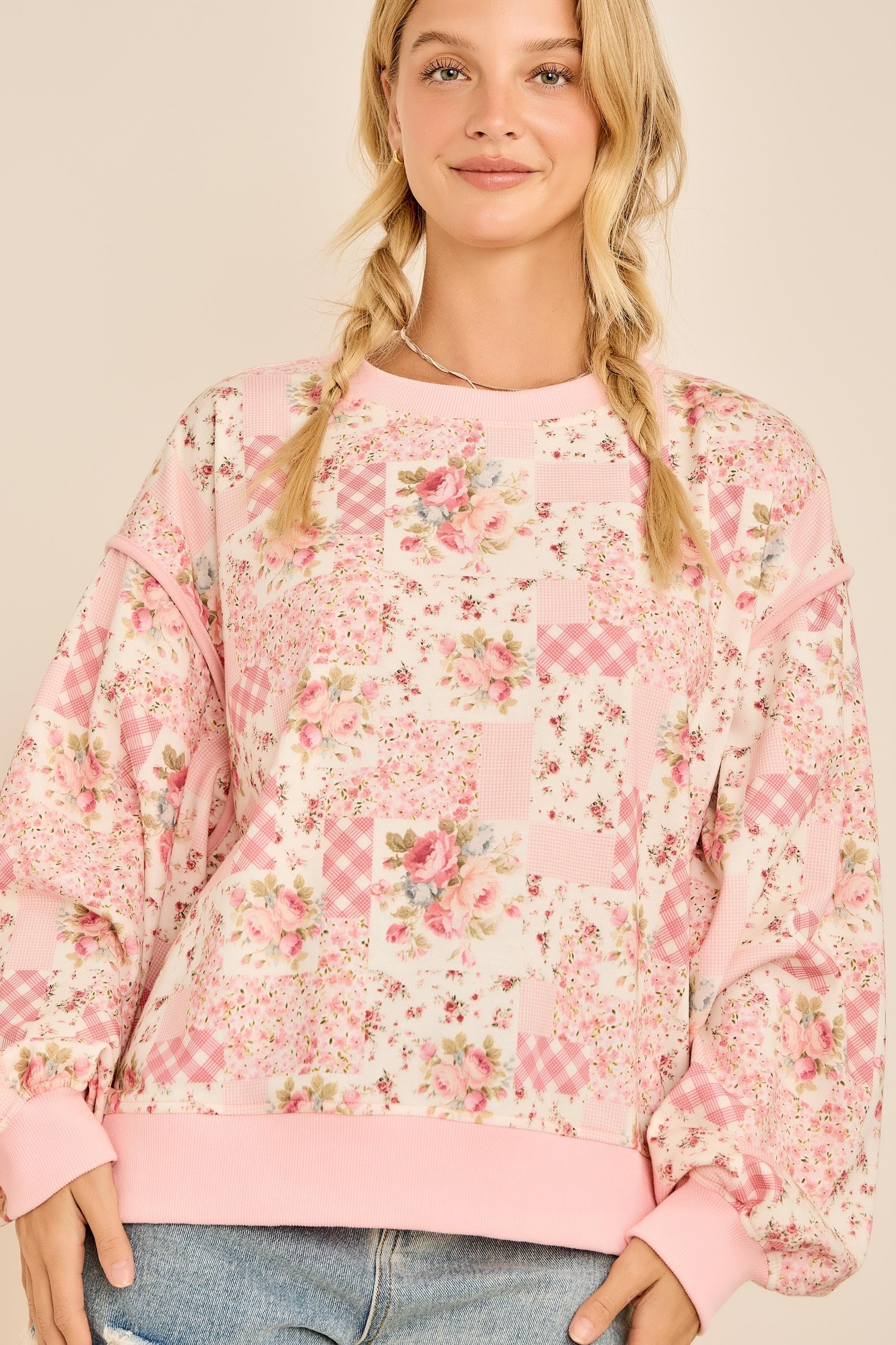 Cozy, feminine, and effortlessly on-trend, the Oversized Patchwork Floral Crewneck Sweatshirt is the perfect blend of comfort and vintage charm. Designed in a soft pink hue, this pullover features a beautiful patchwork floral look that brings a romantic, cottage core-inspired touch to your everyday wardrobe. The relaxed oversized fit makes it easy to throw on and feel instantly comfortable, whether you’re lounging at home or heading out for a casual day. With its classic crew neckline and cozy silhouette, this sweatshirt pairs perfectly with denim, leggings, or matching lounge pieces for an effortlessly styled outfit. Made from a soft cotton blend of 50% cotton and 50% polyester, it offers breathable comfort, durability, and easy care. Sweet, stylish, and endlessly wearable, this floral sweatshirt is a go-to favorite for casual layering and feel-good fashion.