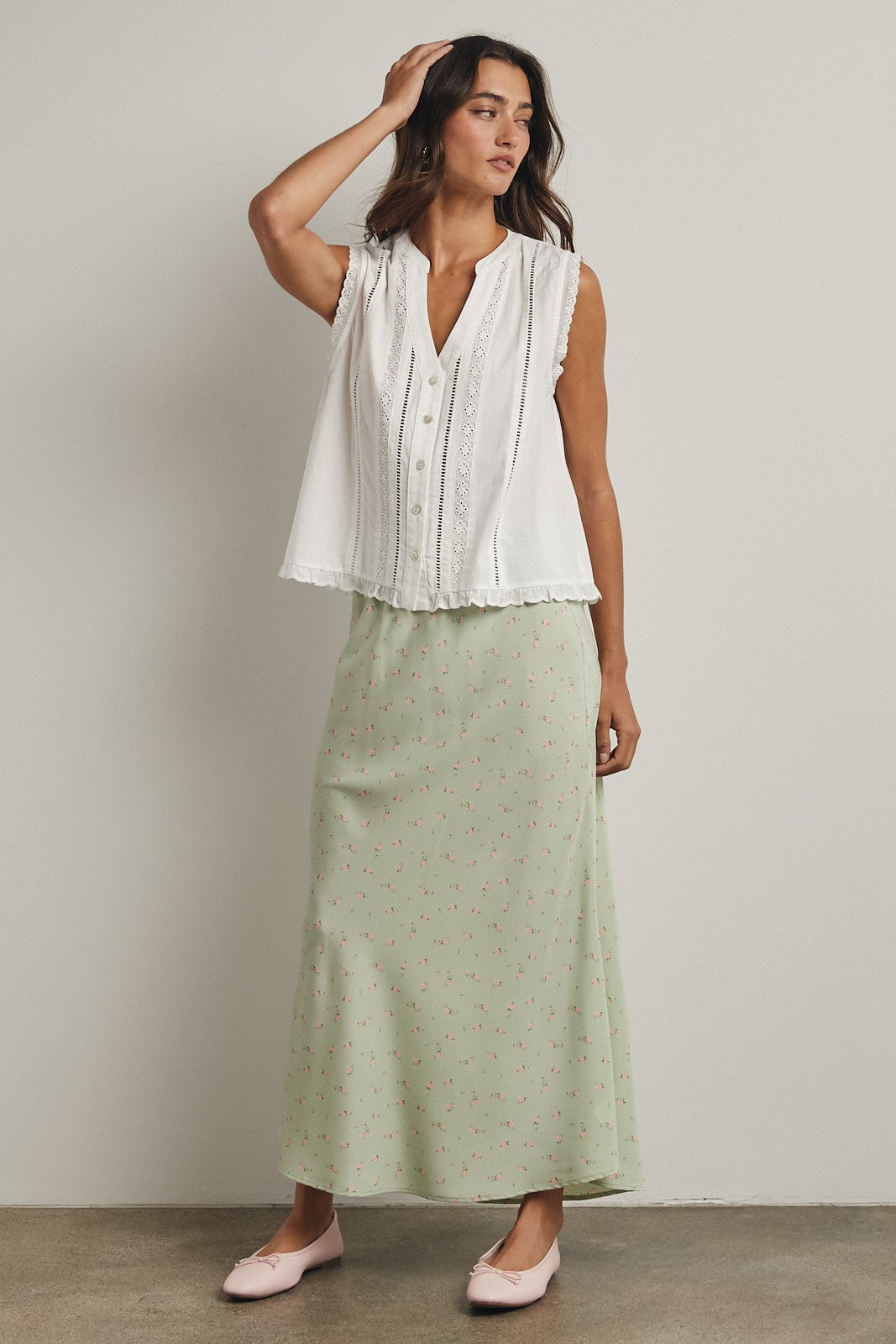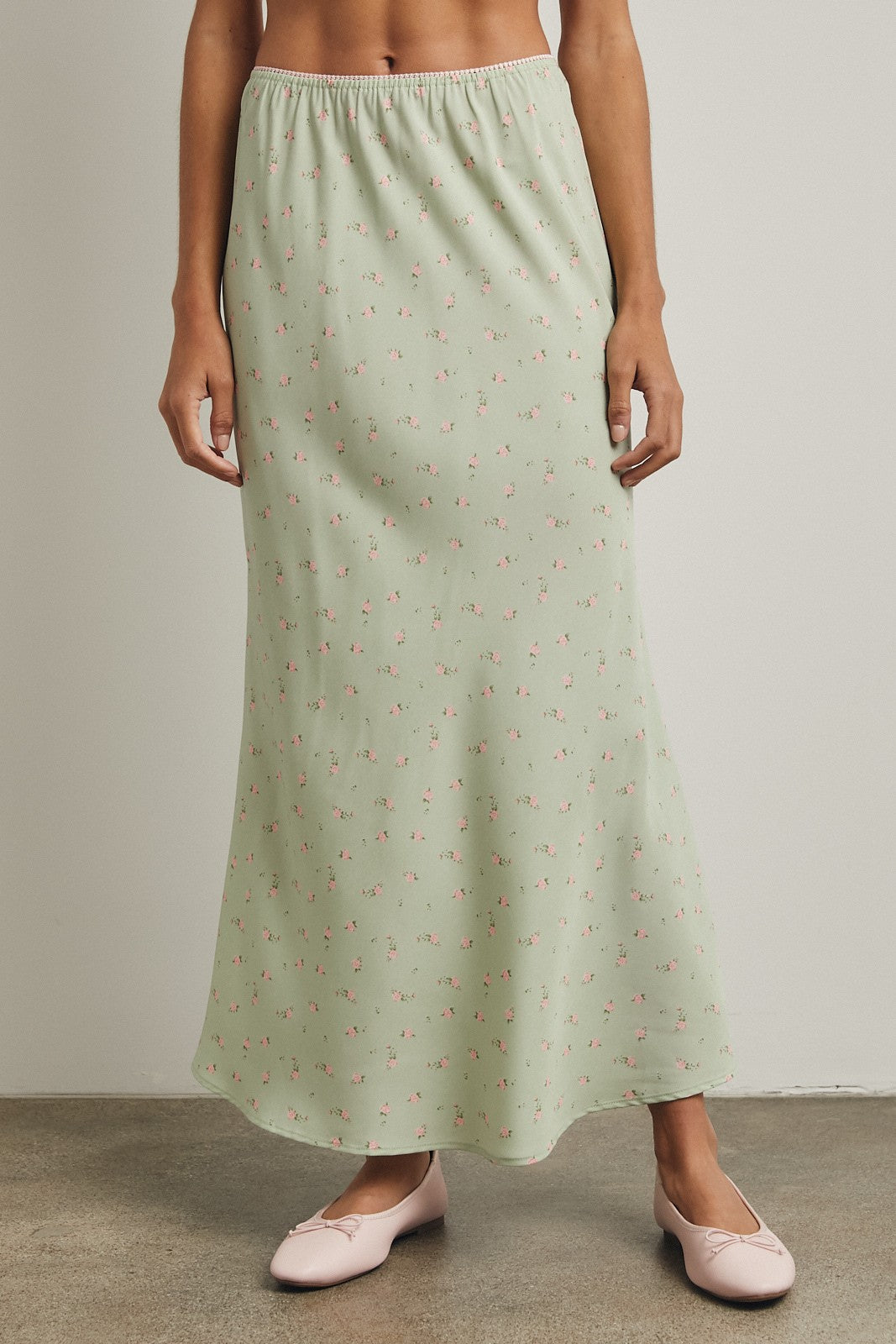 Soft, feminine, and easy to style, the Sage/Pink Ditsy Floral Midi Skirt brings a romantic, everyday charm to your wardrobe. Featuring a delicate ditsy floral print in soft sage and blush-pink tones, this skirt offers a timeless look that transitions effortlessly through the seasons. The elastic waistband provides a comfortable, pull-on fit, making it perfect for all-day wear, while the fully lined interior ensures coverage and a smooth, flattering drape. With a total length of 37" in a size small, this midi silhouette flows beautifully and pairs effortlessly with fitted tees, cozy sweaters, or lightweight blouses. Subtle trim detailing adds a refined finishing touch, elevating the overall design without overpowering the print. Crafted from 100% polyester in the self fabric, with trim made of 92% nylon and 8% spandex and a 100% polyester lining, this skirt combines durability, comfort, and effortless elegance for endless styling possibilities.