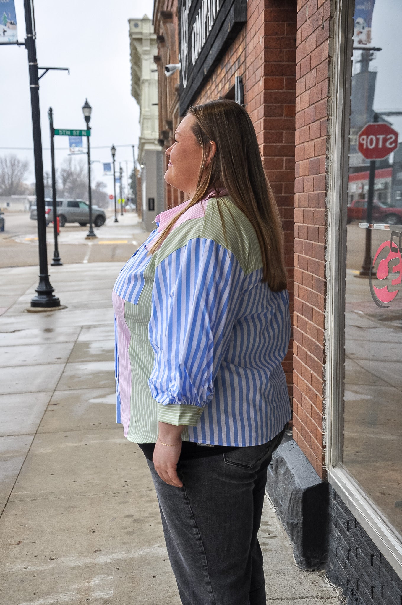 The Stripe Mix-Match Button Down Top in Blue/Pink is a fresh take on a classic striped style. Crafted from 100% cotton, this top is lightweight, breathable, and comfortable for all-day wear. The mix-matched stripe pattern adds playful visual interest, while the button-down front keeps the look timeless and versatile. Designed with 3/4-length puff sleeves for a touch of volume and femininity, it also features a chest pocket for an easy, casual finish. Effortlessly styled with denim, shorts, or tailored bottoms, this top brings color, comfort, and charm together in one standout piece.