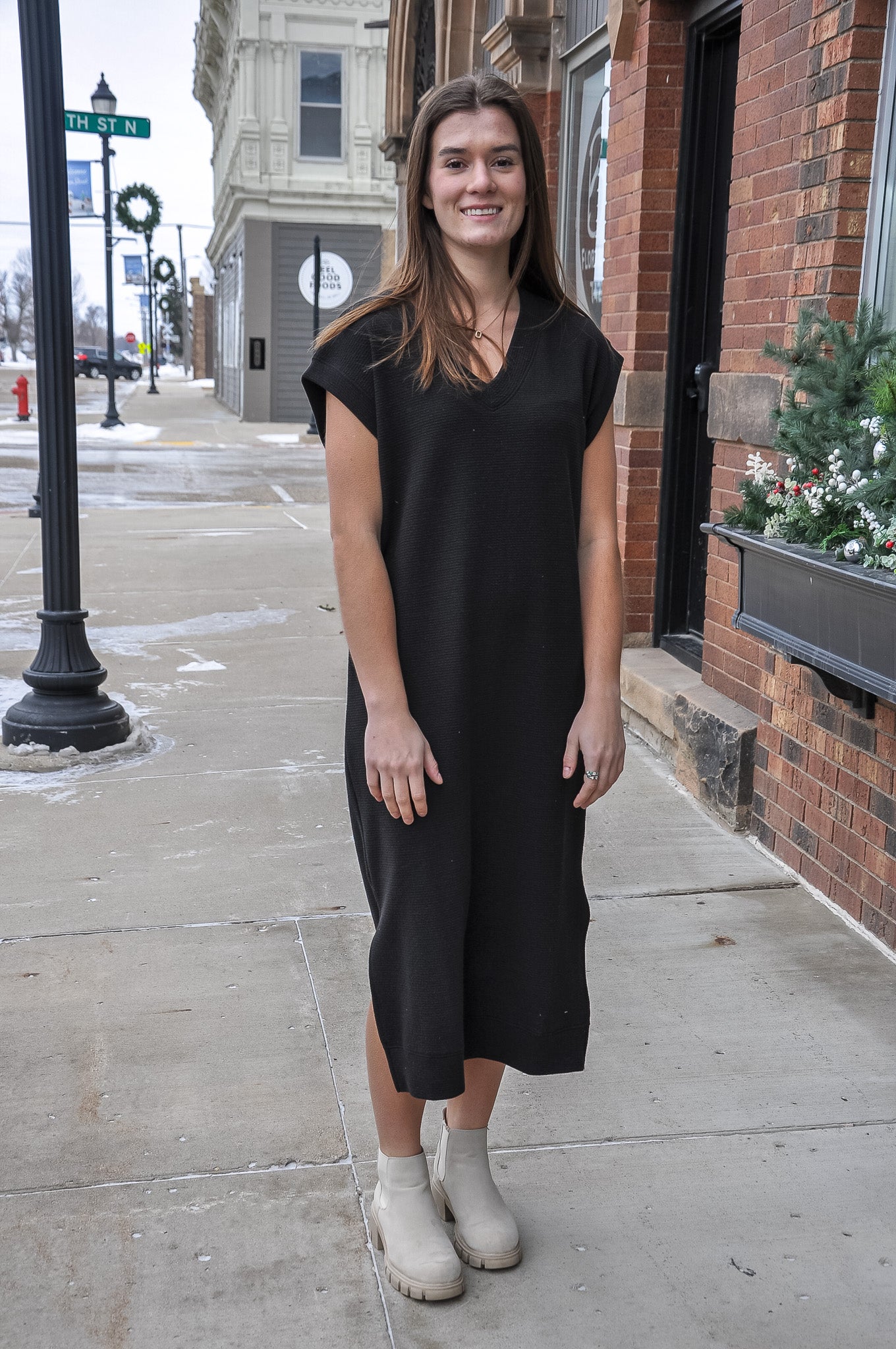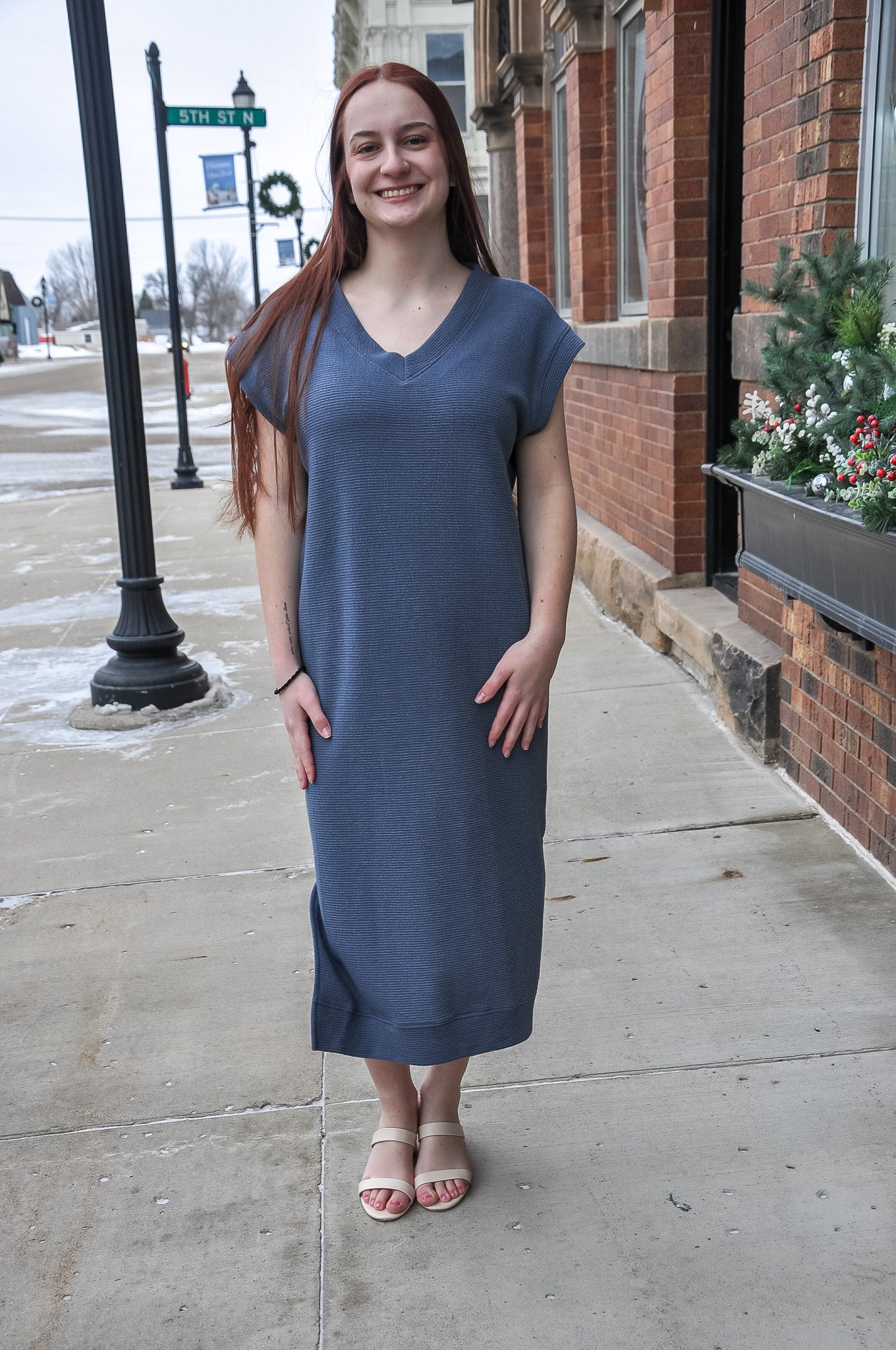The V-Neck Short Sleeve Maxi Cloudy Knit Dress, available in Denim or Black, is where comfort meets understated elegance. Made from a soft blend of 71% polyester, 27% cotton, and 2% spandex, this dress features our signature Cloudy Knit fabric—known for its plush texture and lightweight stretch. The relaxed silhouette drapes beautifully, complemented by a flattering V-neckline and short sleeves that allow for easy movement and breathability. Perfect for casual days, travel, or elevated evenings out, this maxi dress delivers effortless sophistication and all-day comfort. The Cloudy Knit Dress is a timeless wardrobe essential that transitions seamlessly between seasons and occasions.