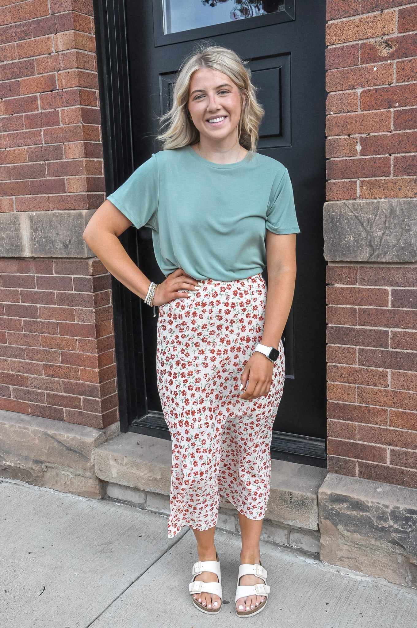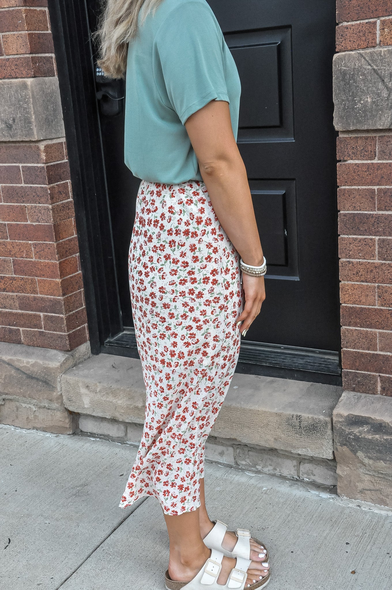 Floral Midi Skirt – Cream/Poppy